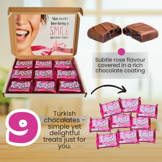 Turkish Delight Gift Box | Turkish Delight Chocolate (6 x 51g) and Mini Bars (2 x 7 pack 105g) with Ferrero Rocher Chocolate (3pack 37.5g)
