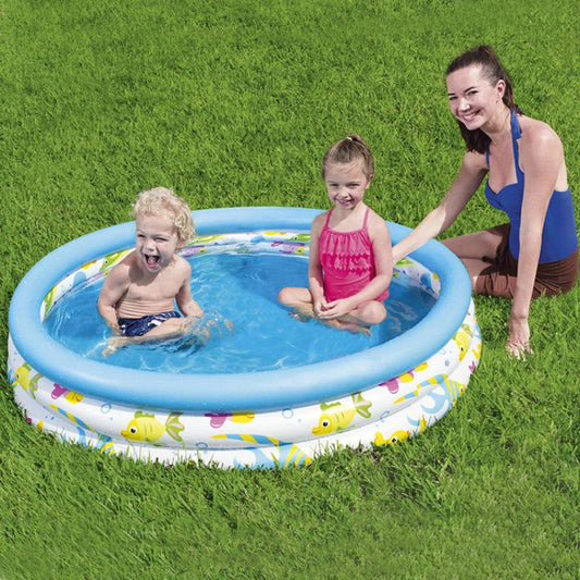 Aquatic Themed Inflatable 3-Ring Paddling Pool | Quick Inflate Pool for Summer Relaxation and Play | Perfect for Kids Fun & Outdoor Activities