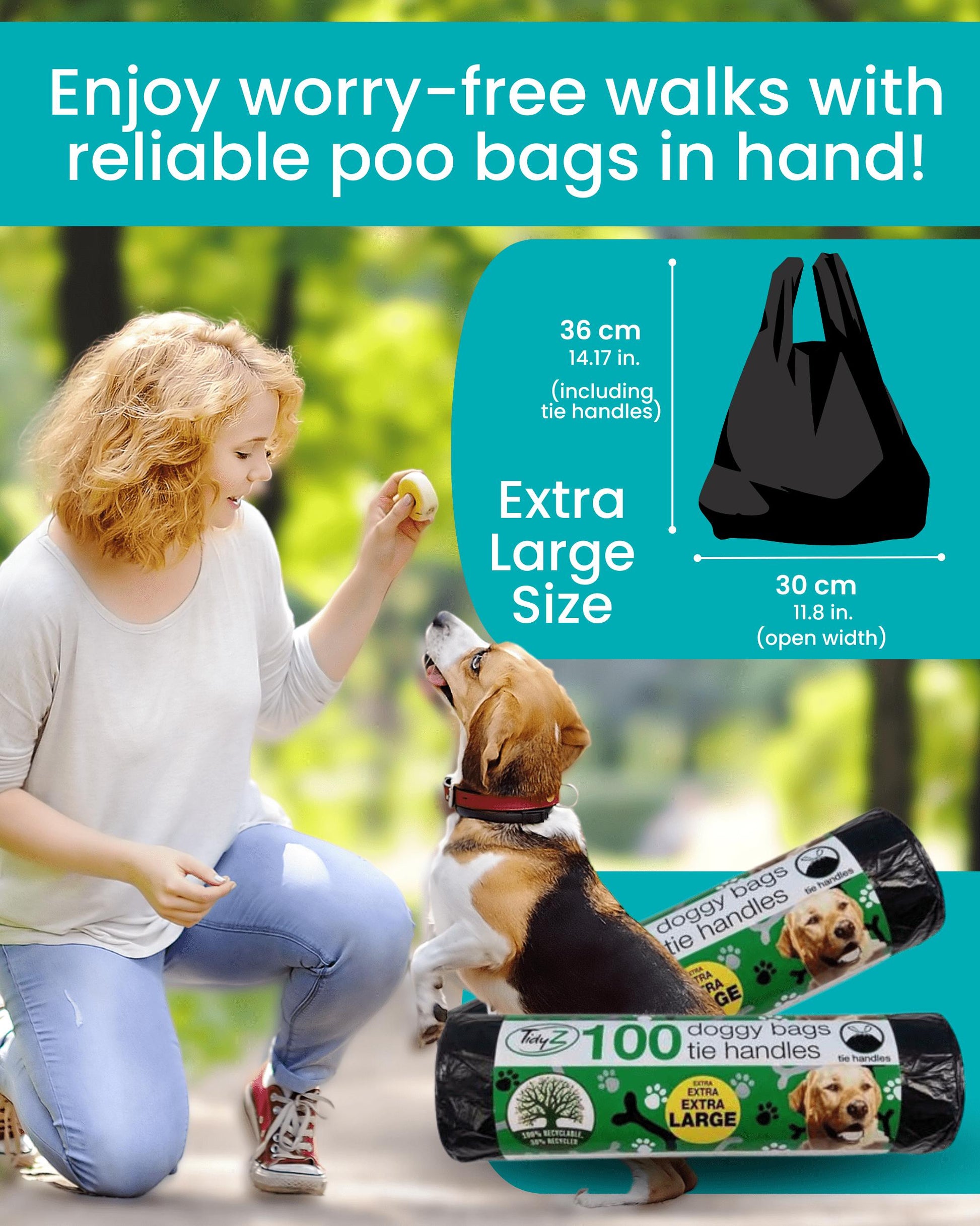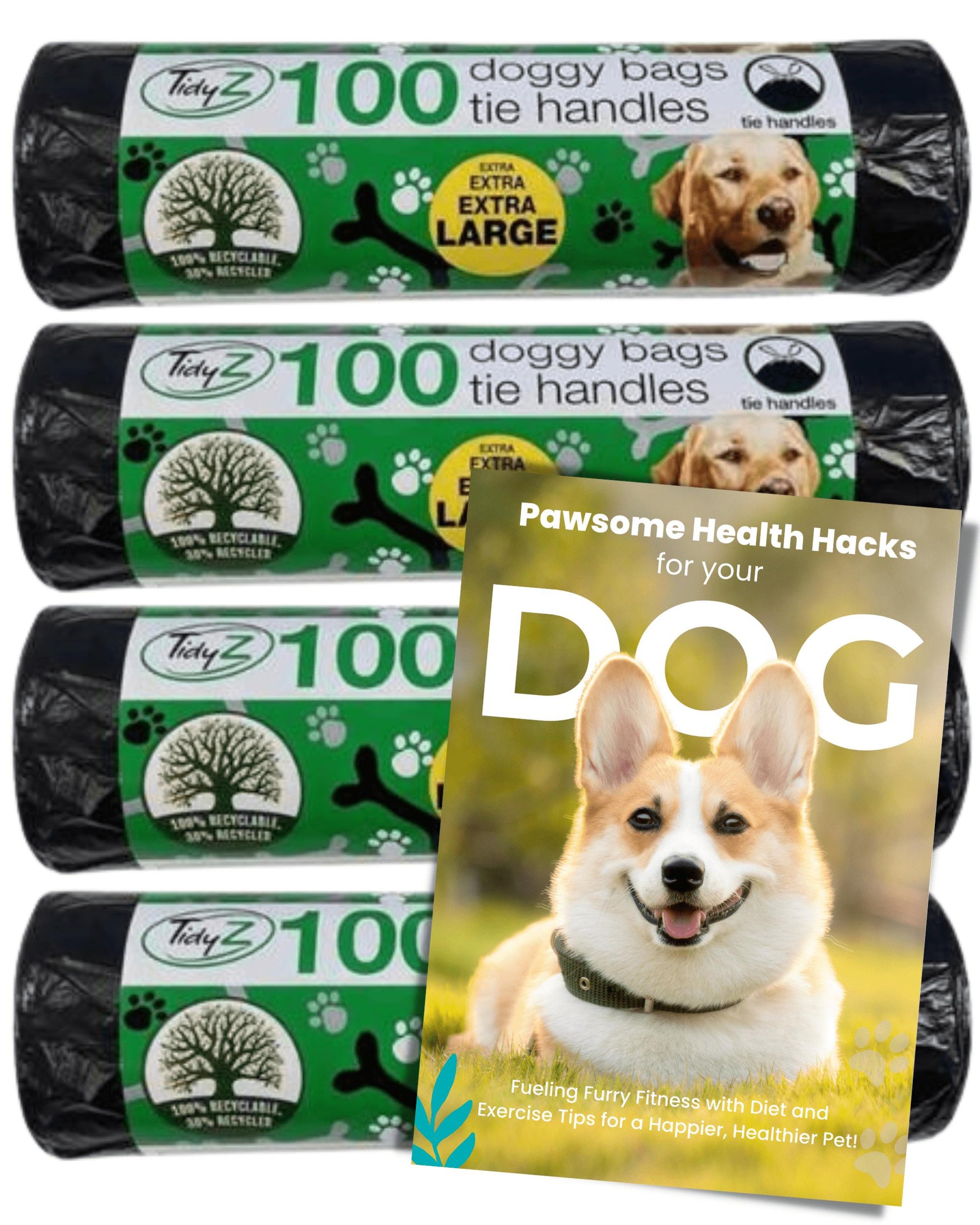 Tidyz Doggy Poop Bags with Tie Handles and Dog Health Tips Leaflet 4 Packs x 100 (30 cm x 36 cm)