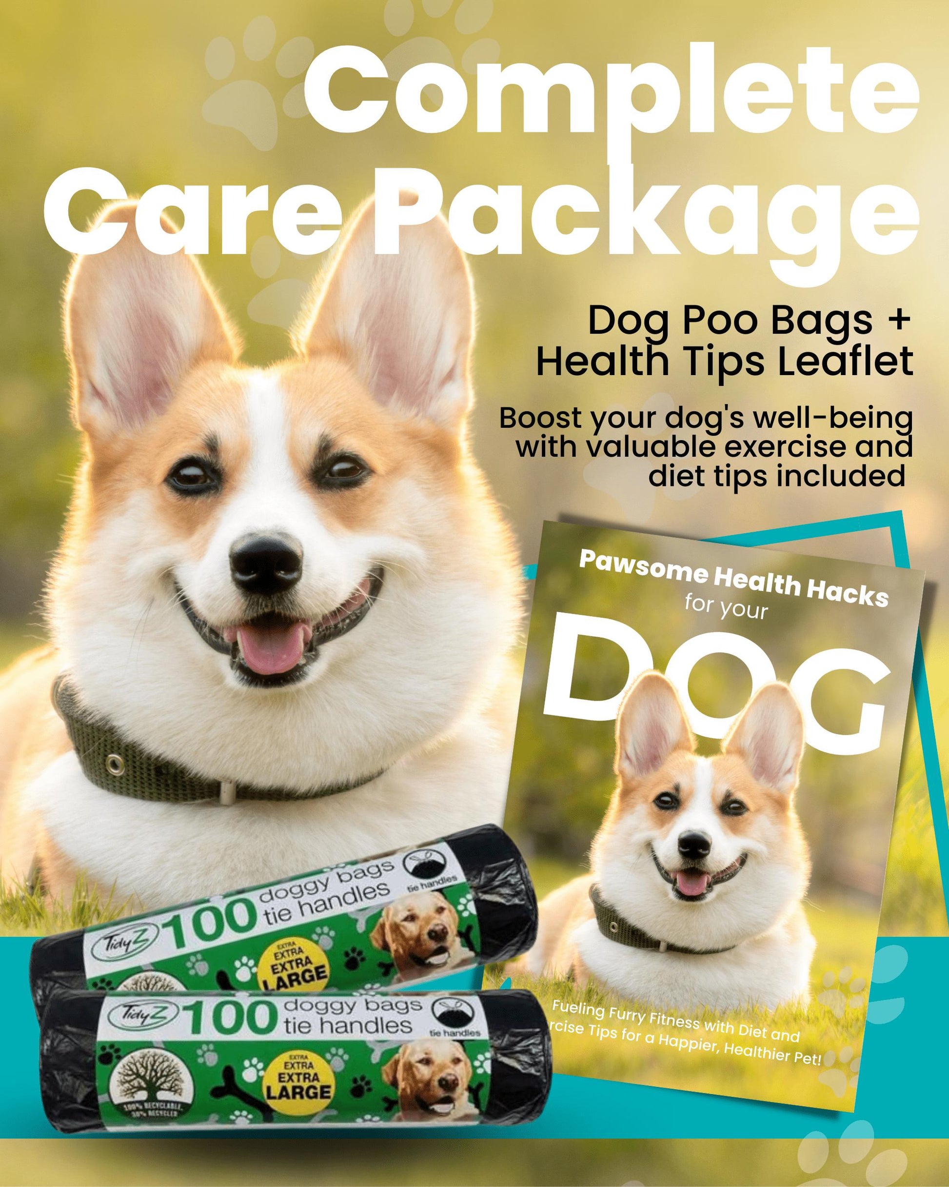 In every pack of Tidyz Doggy Poop Bags comes an informative dog health tips leaflet. This helpful guide provides useful information on how to maintain your dog's health and wellbeing while also keeping the environment clean.