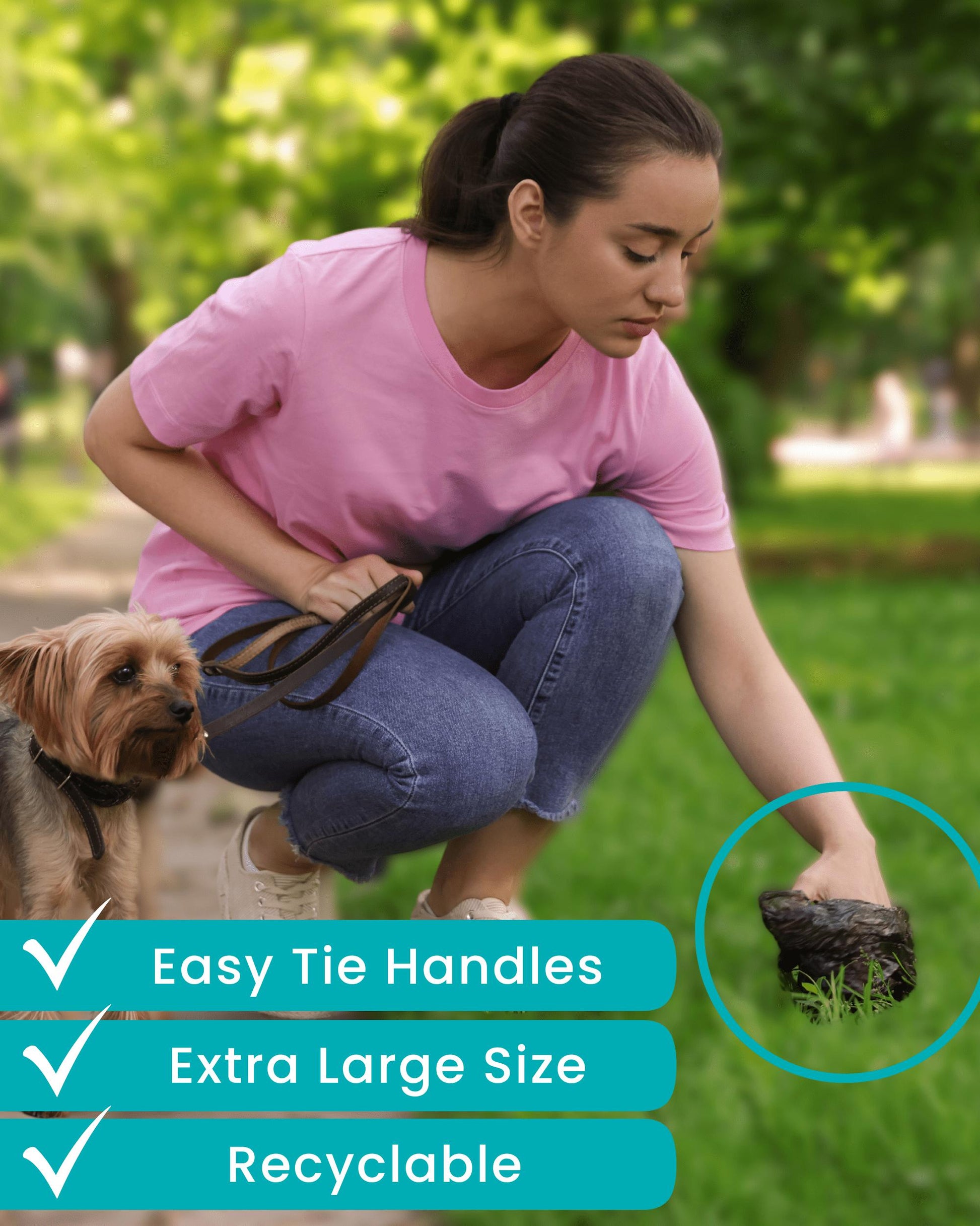 The tie handles make it easy to securely tie up the bag after use, preventing any unwanted mess or odour. Each bag is also made from durable materials that won't easily tear or leak.