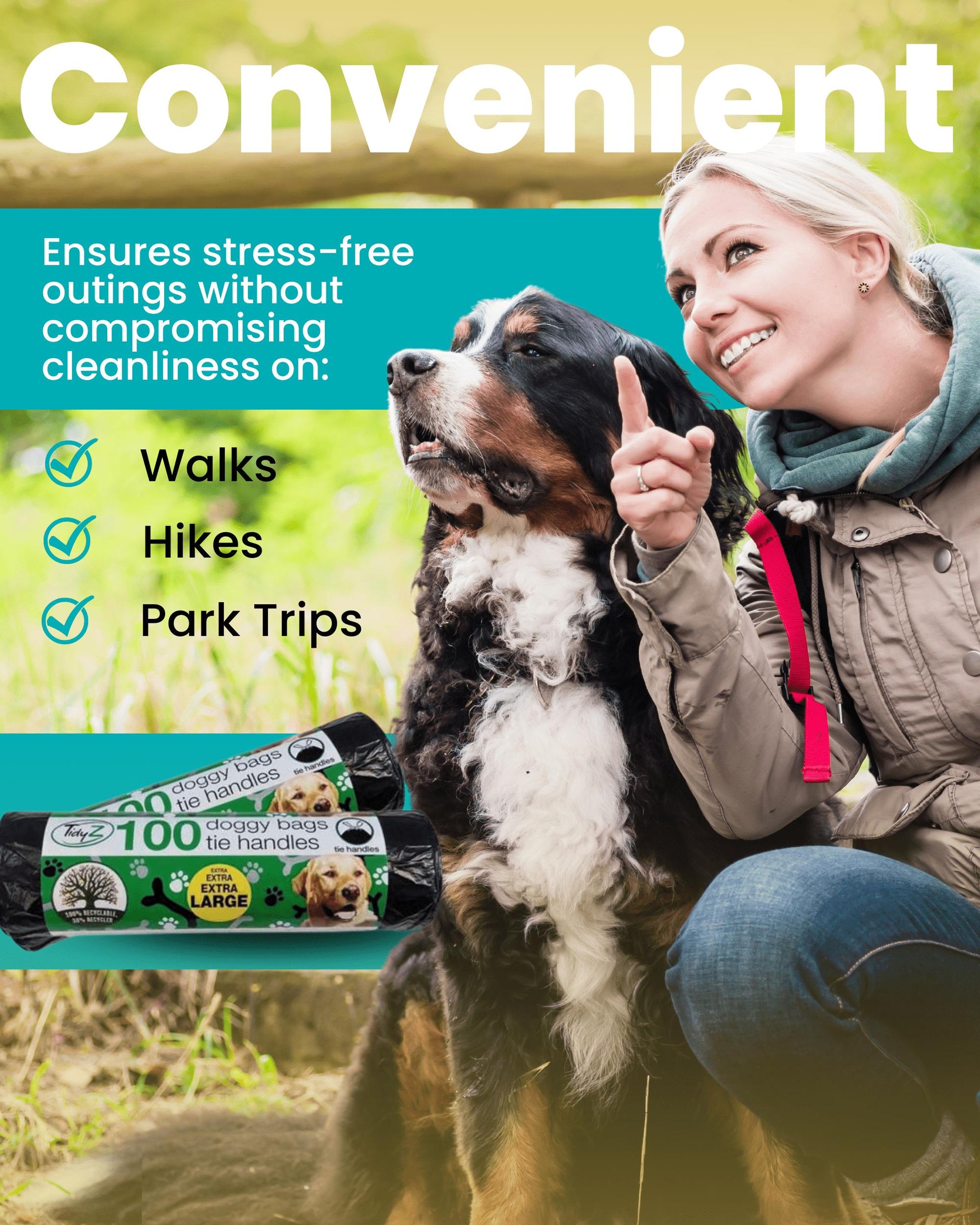 Make cleaning up after your furry friend a breeze with Tidyz Doggy Bags. These Doggy Poop Bags come in a multi-pack of 4, with 100 bags in each pack, providing you with a total of 400 bags to last you for many walks to come.