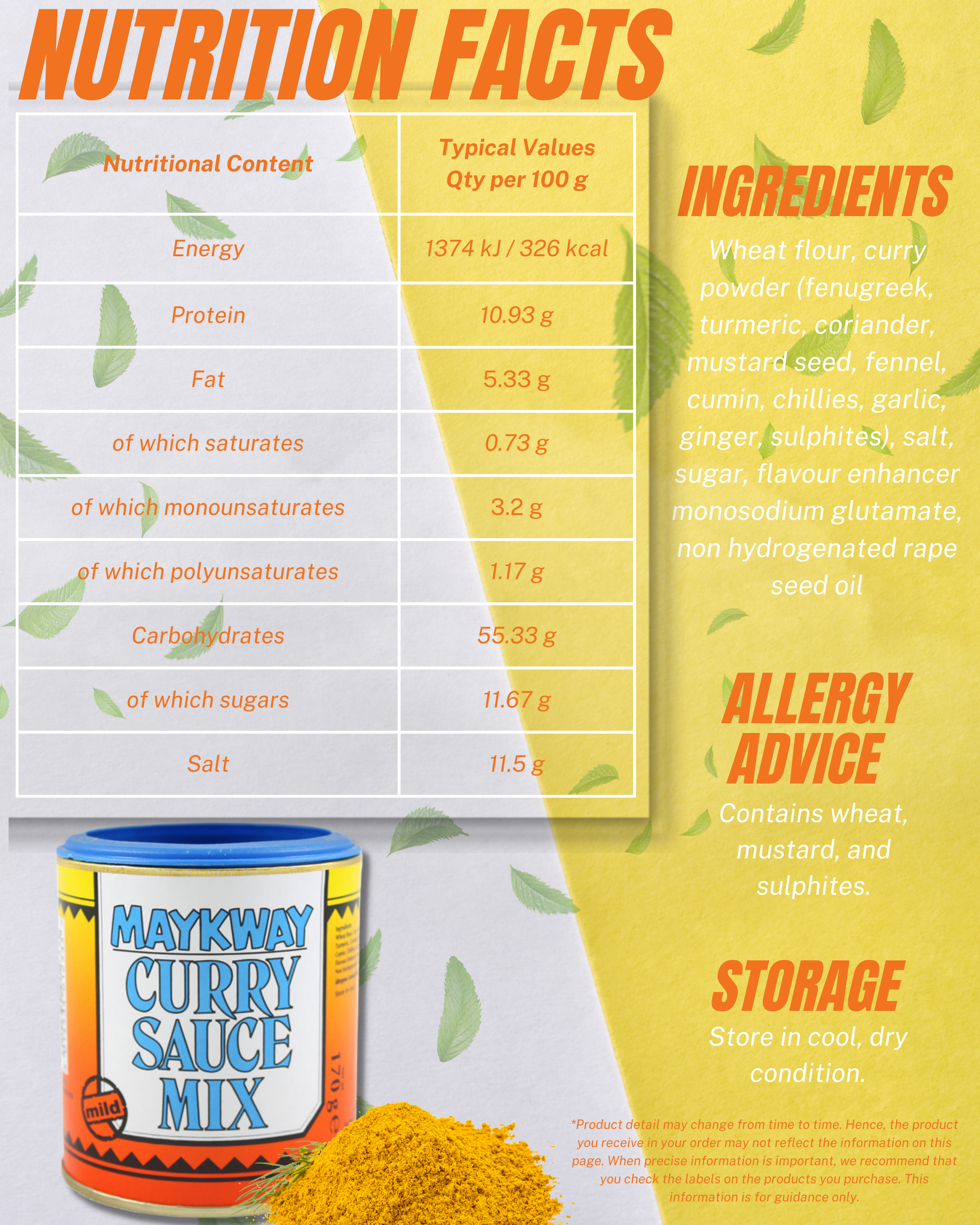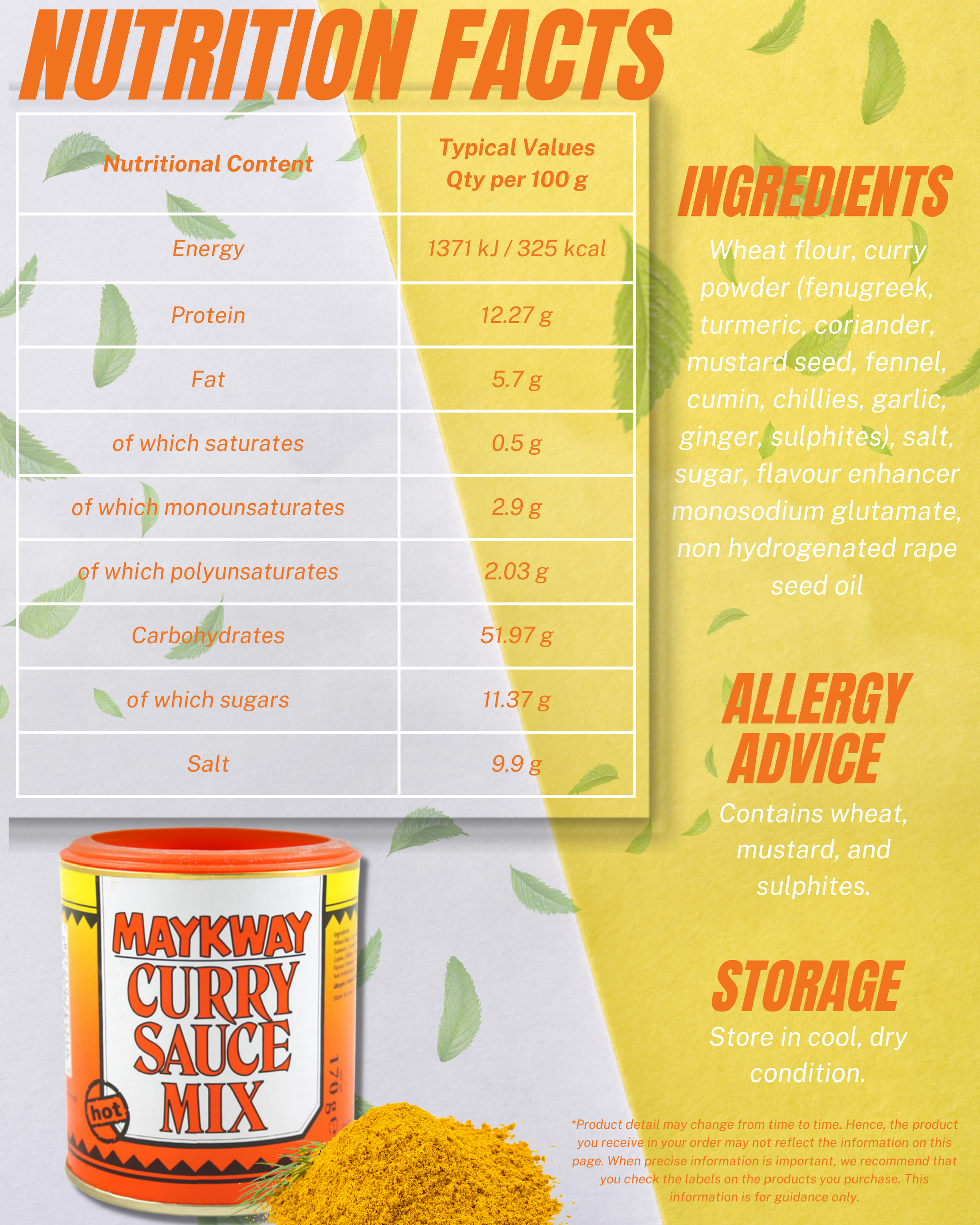 Easy to Use: With Maykway Curry Sauce Mix, preparing delicious curries has never been easier. Simply add the mix to your favourite meat or vegetable dish for an instant flavour boost.