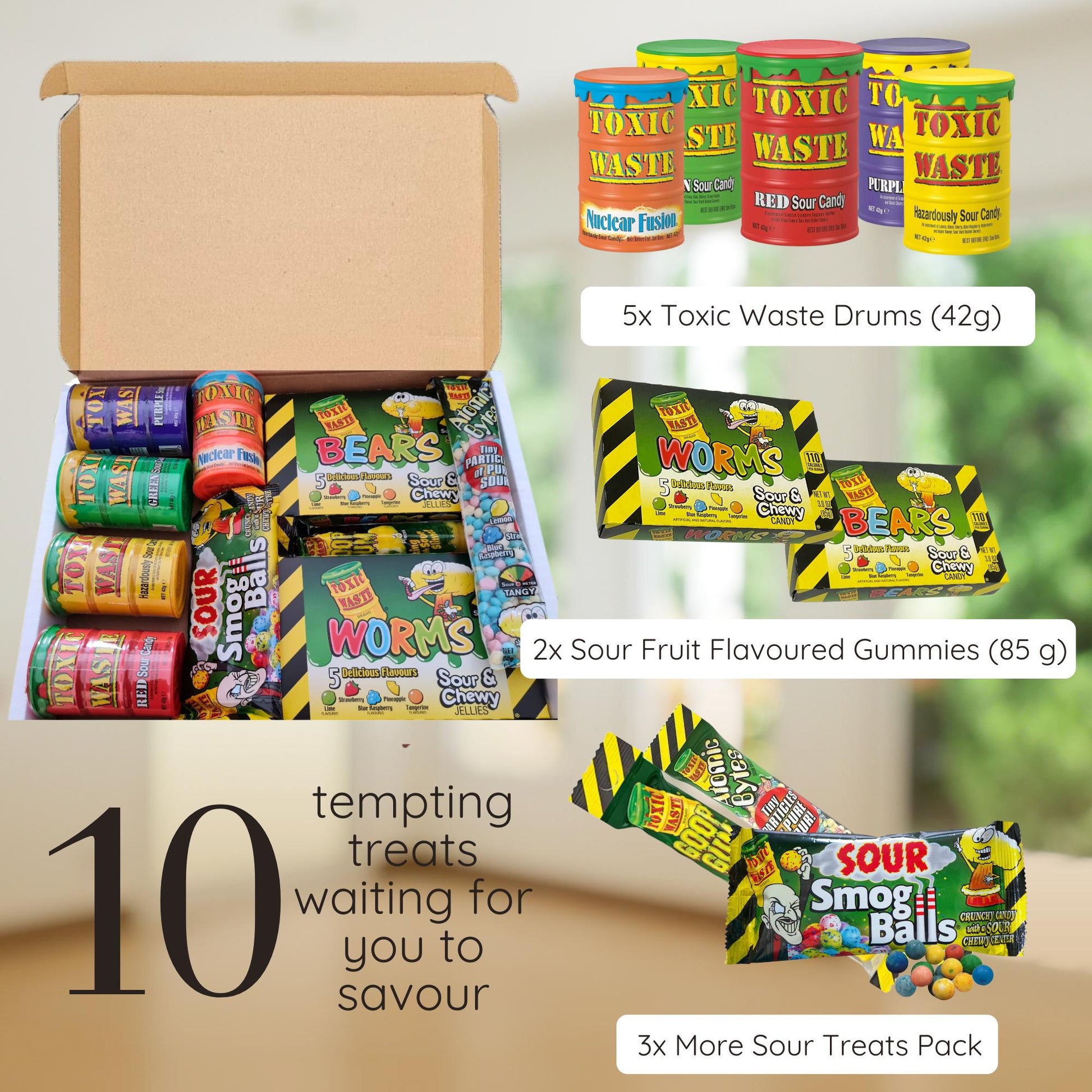Toxic Waste Sweets Candy Gift Box - Extreme Sour Sweets Assorted 10 Packs | Selection of Sour Fruit-Flavoured Candies & Gummies for Gifting
